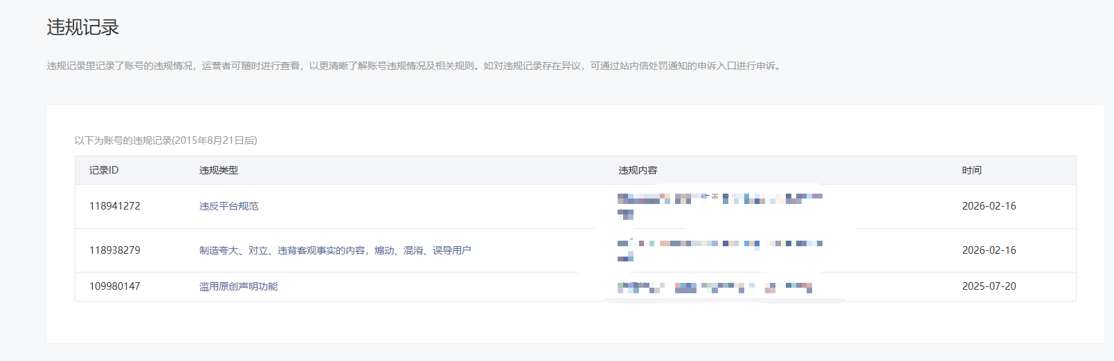 • 违规记录