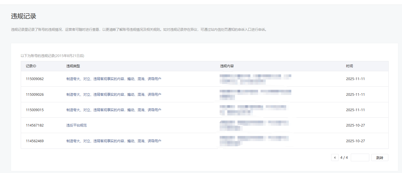 • 违规记录