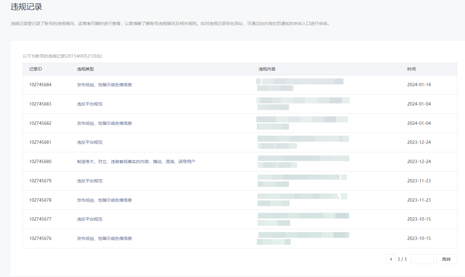 • 违规记录
