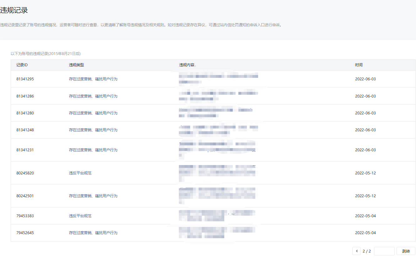 • 违规记录