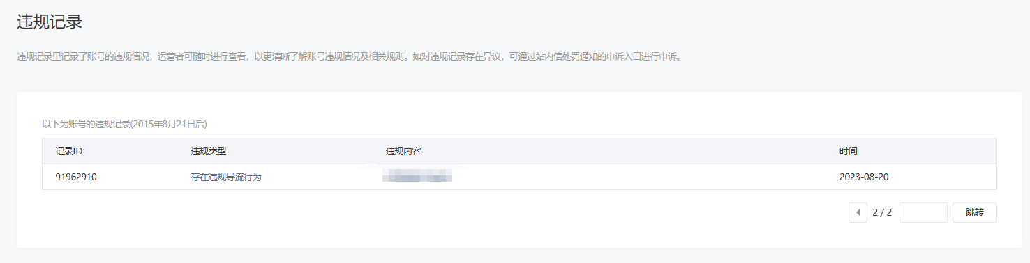 • 违规记录
