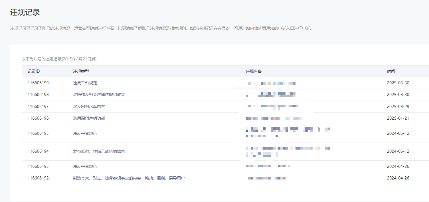 • 违规记录