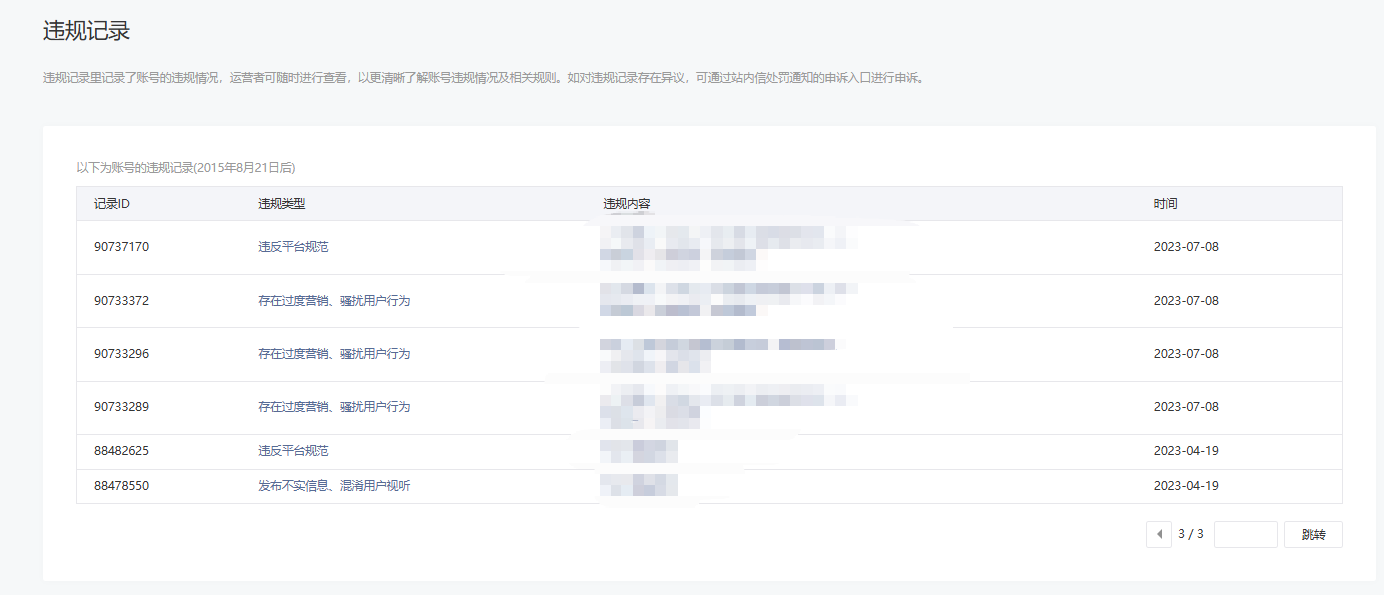 • 违规记录