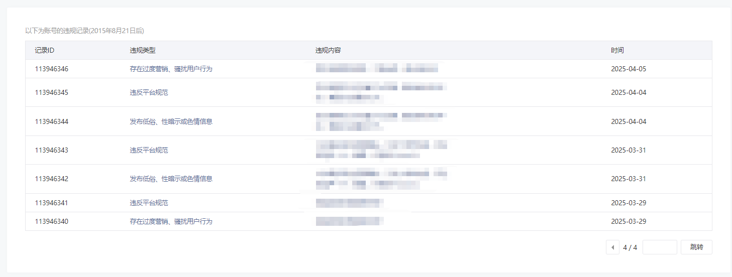 • 违规记录