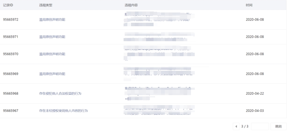 • 违规记录