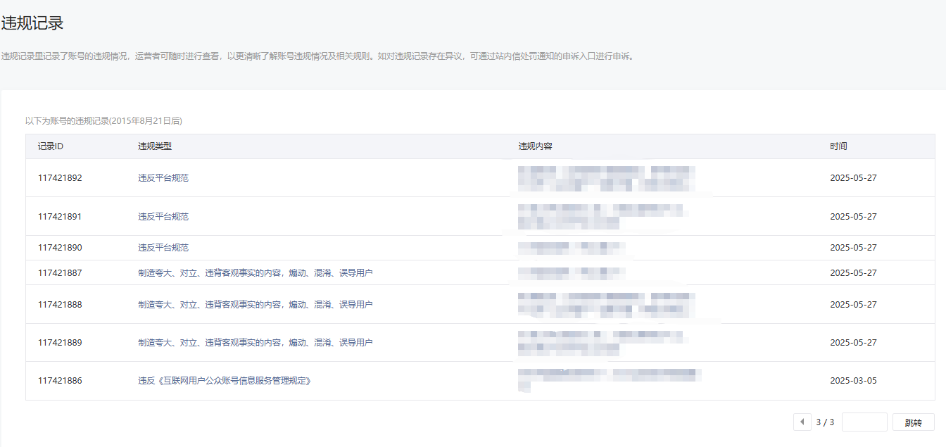 • 违规记录