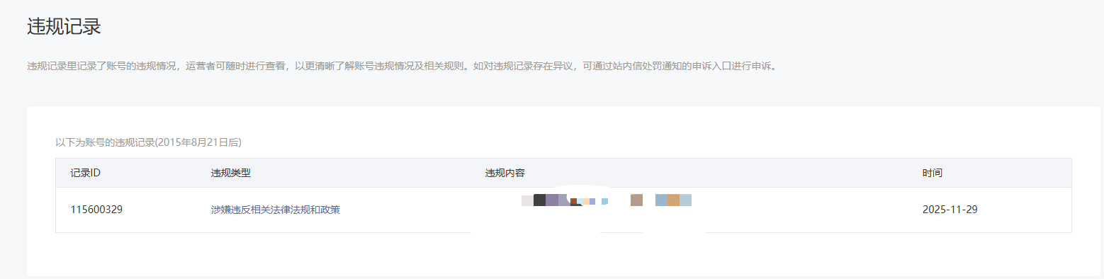 • 违规记录