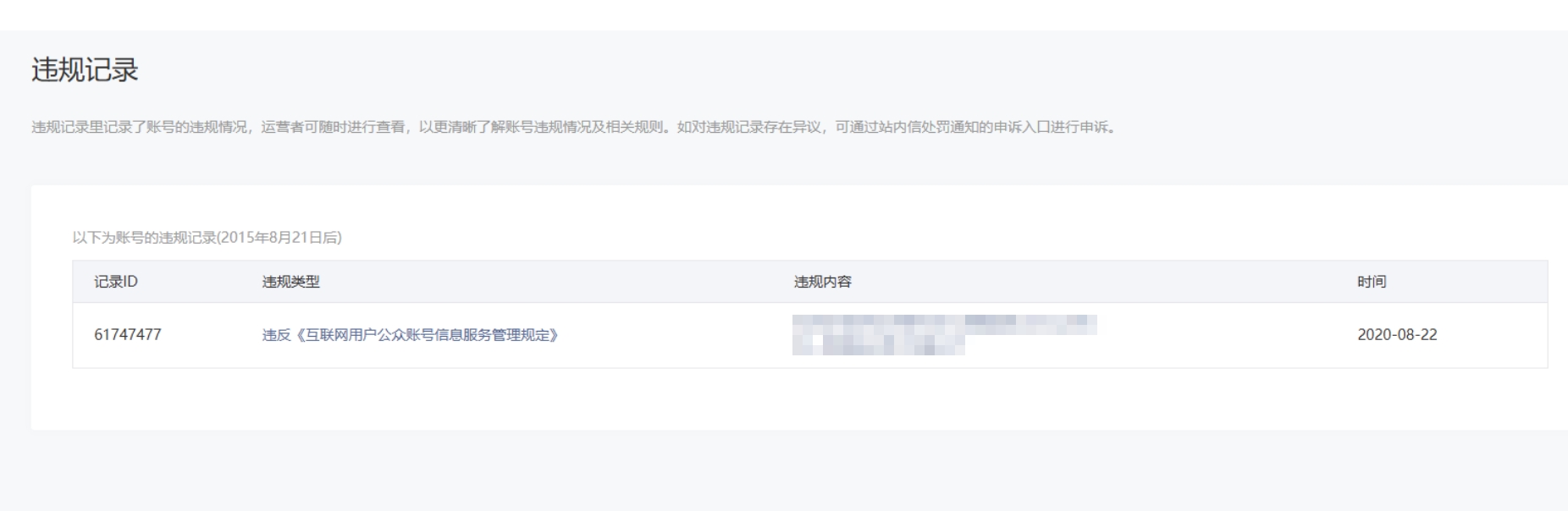 • 违规记录
