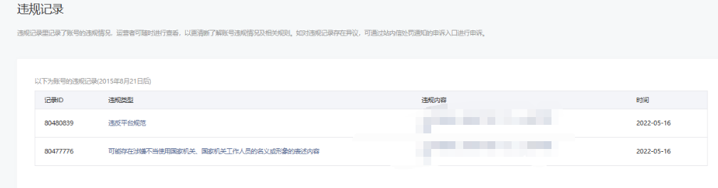 • 违规记录