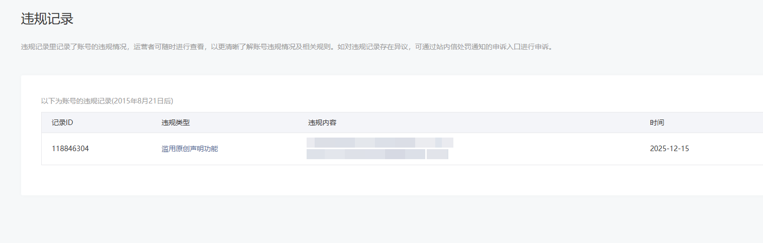 • 违规记录