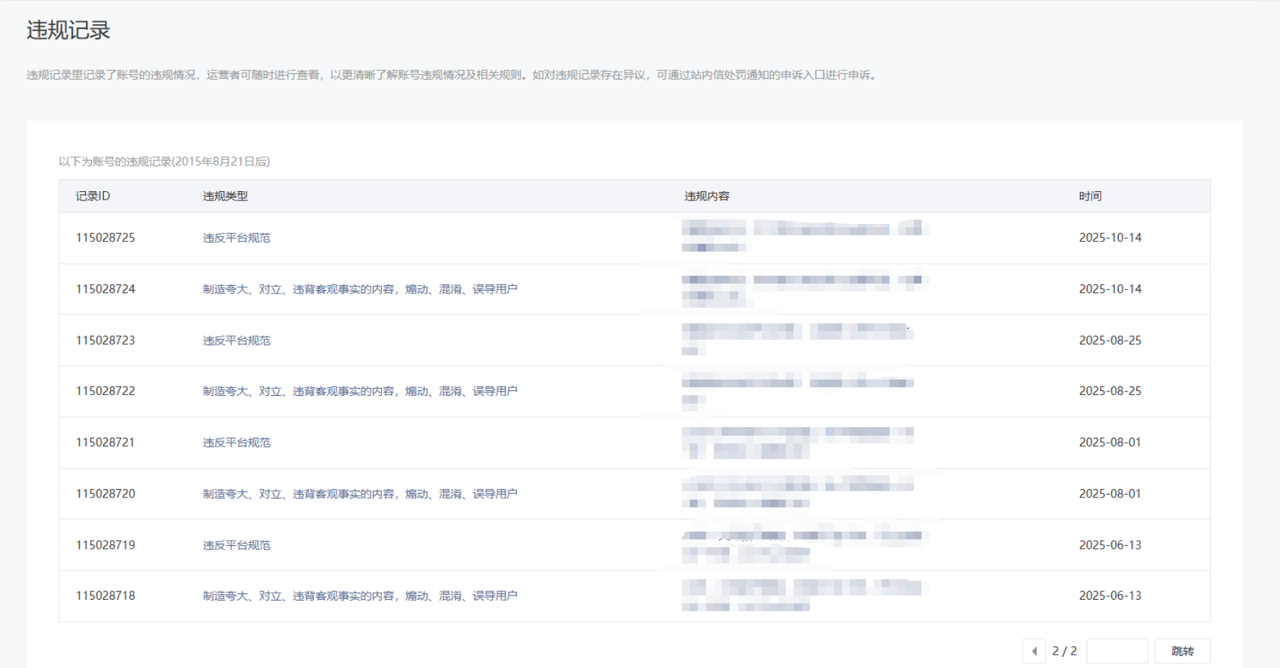 • 违规记录