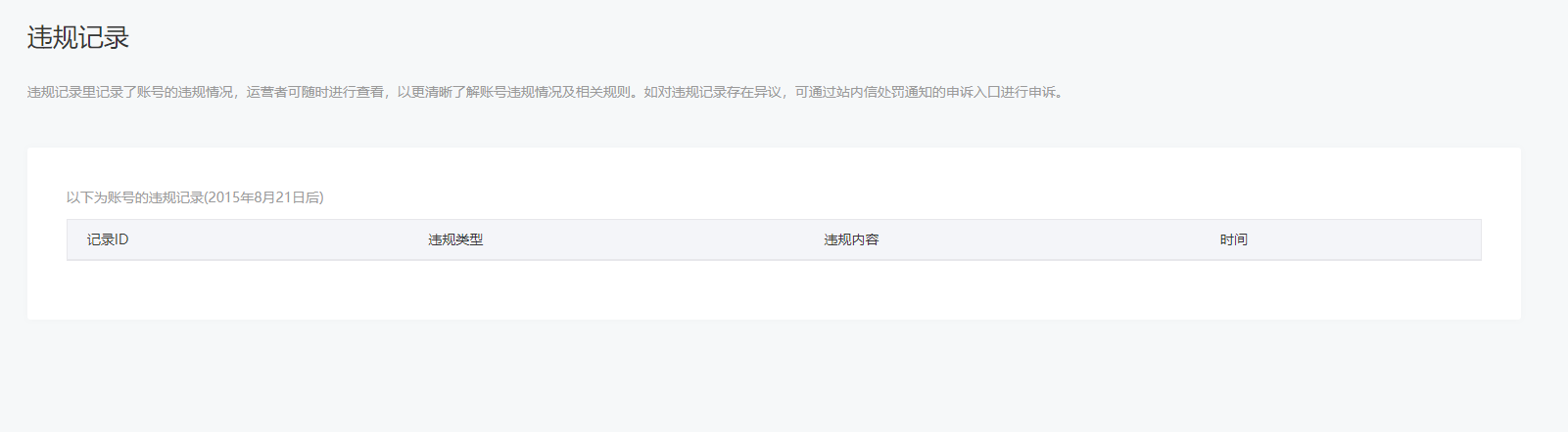 • 违规记录
