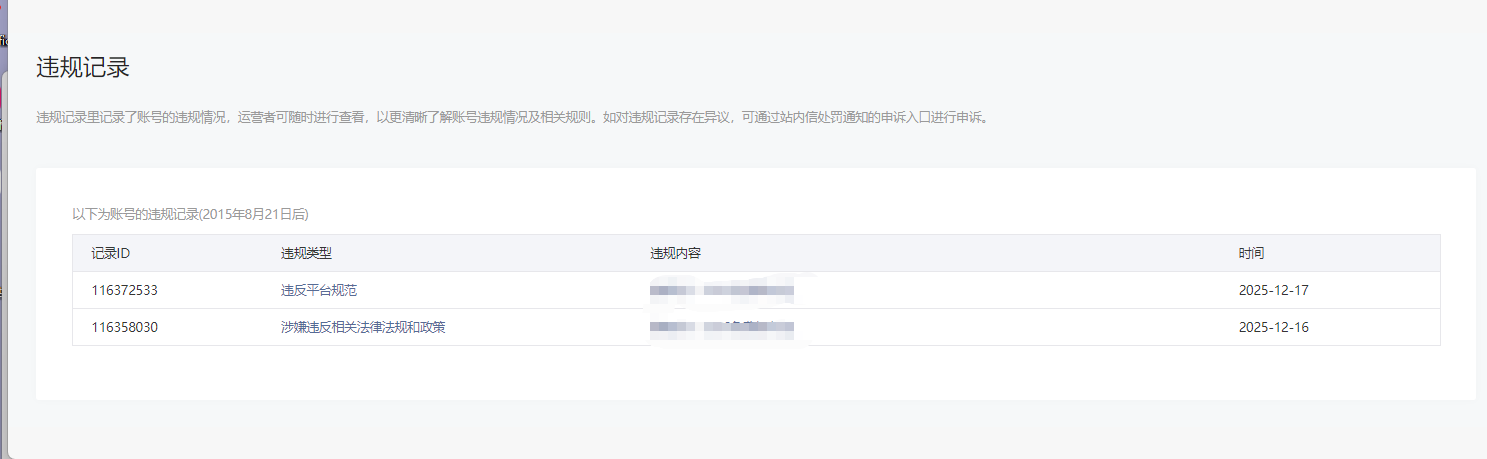 • 违规记录
