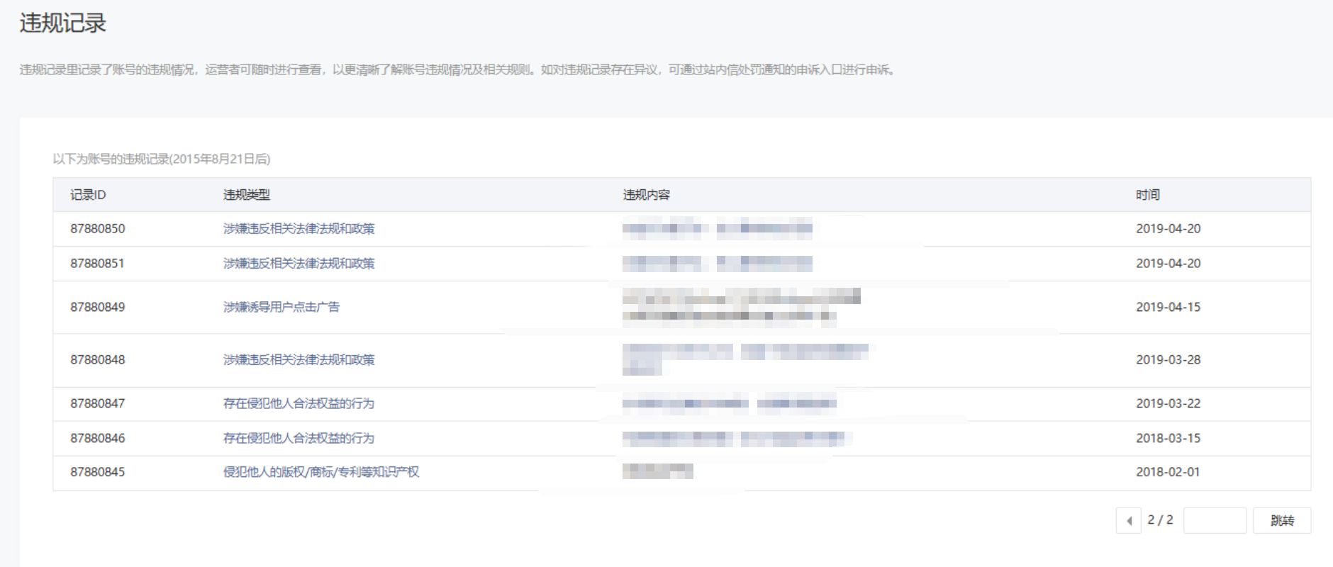 • 违规记录