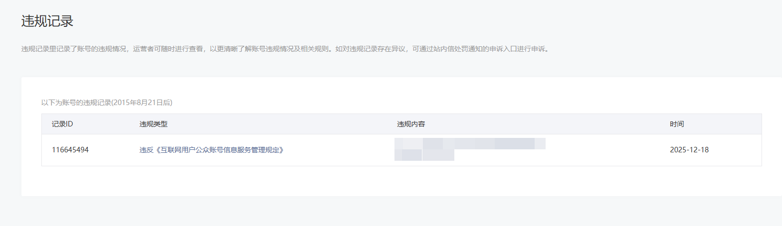 • 违规记录