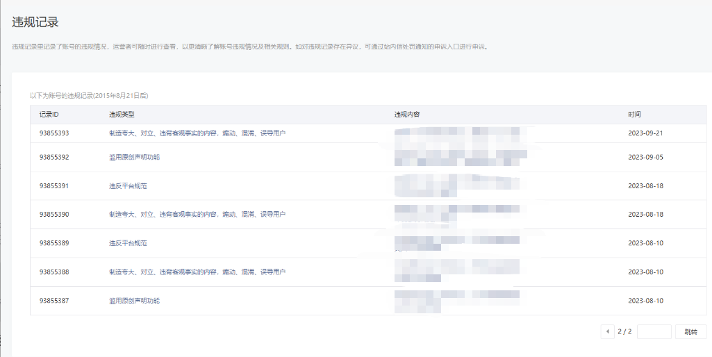 • 违规记录
